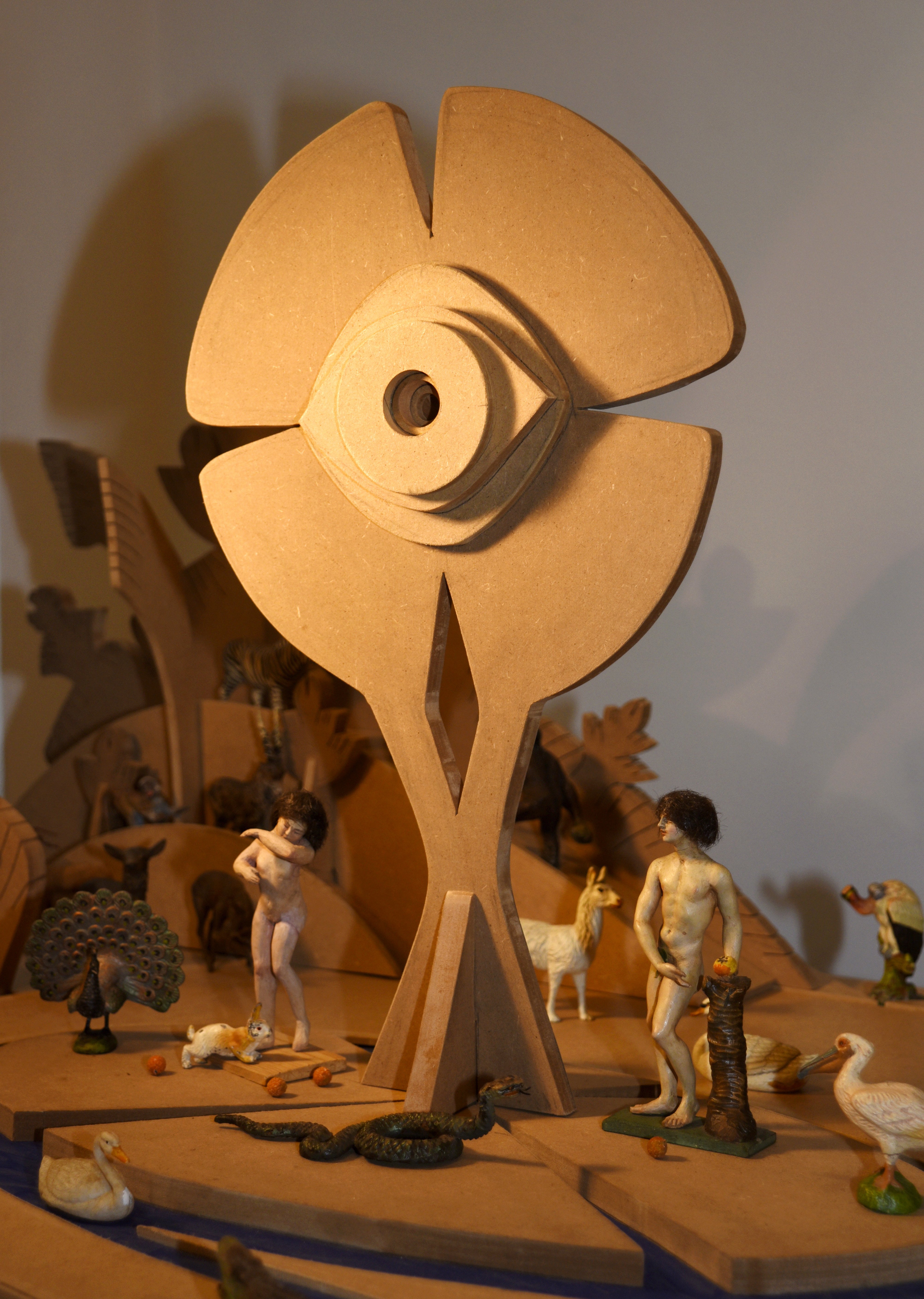 Adam und Eva im Paradies vor dem Baum der Erkenntnis und die Mühen